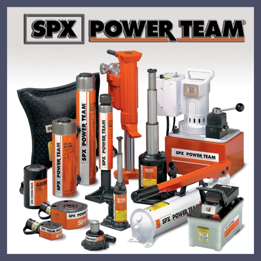 Flachhebe-, Spannring-, hochlastige und andere Zylinder; Flaschenzüge, Zungenheber und Hebe- kissen; elektrische, handbetätigte, druckluft- und benzingetriebene Pumpen; Abzieher; Pressen; Schraub- und Spezial-werkzeug; Ventile; Schläuche, Manometer, Kupplungen, Verschraub-ungen, Verteilerblöcke und Flüssigkeiten